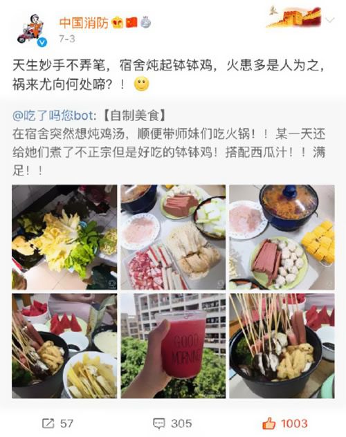 其實,這并非消防叔叔榜首次這么“關懷”同學們的宿舍消防安全了,前幾天, 就開端對宿舍吃火鍋宣布“正告”了: